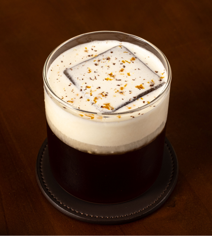 Cold brew topped with citrusy cream, orange zest, and fresh nutmeg, served over in-house clear ice.